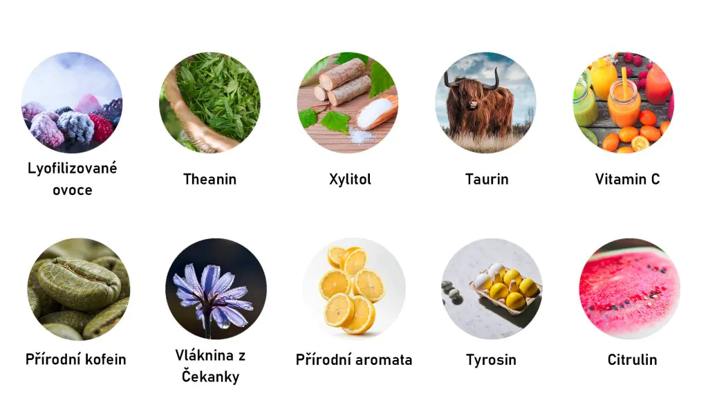 Přírodní kofein pomáhá k lepšímu soustředění, zvýšení výkonu či bystrosti. Vitamin C přispívá ke snížení míry únavy a vyčerpání, normální psychické činnosti, nervové soustavy, ochraně buněk před oxidativním stresem. Tyto složky tak spolu v kombinaci s L-theaninen, Citrulinem nebo Tyrosinem z Tackery dělají funkční doplněk stravy postavený na více aktivních látkách než klasický, plechovkový energy drink.